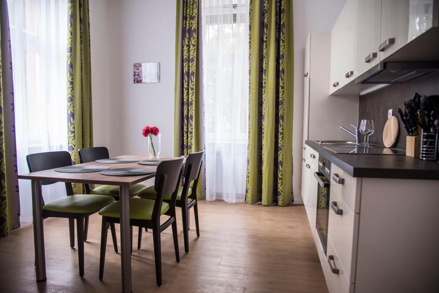 One-Bedroom Apartment. This spacious apartment comes with 1 living room, 1 separate bedroom and 1 bathroom with a shower. In the well-fitted kitchen, guests will find a stovetop, a refrigerator, a dishwasher and kitchenware. The apartment features a coffee machine, a seating area, a dining area, a wardrobe, as well as a flat-screen TV. The unit has 2 beds. ;