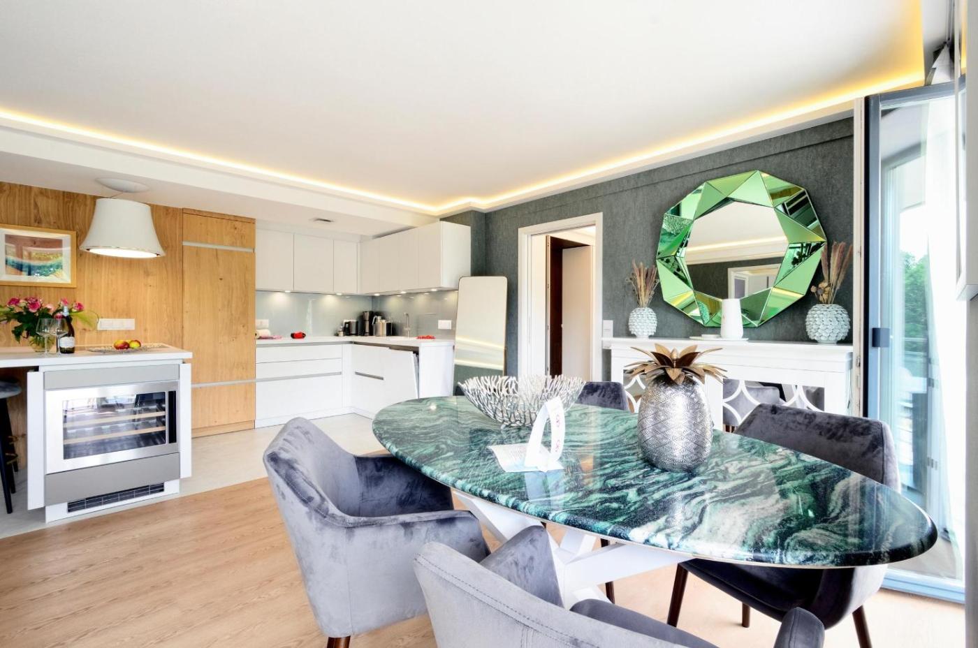 Superior Apartment with Sauna. The sauna is the standout feature of this apartment. This spacious apartment features a kitchen, a seating area, 2 separate bedrooms and 2 bathrooms with a shower and a bidet. In the well-equipped kitchen, guests will find a stovetop, a refrigerator, a dishwasher and an oven. This apartment has a coffee machine, a wardrobe, a TV with cable channels and a balcony. The unit has 2 beds.