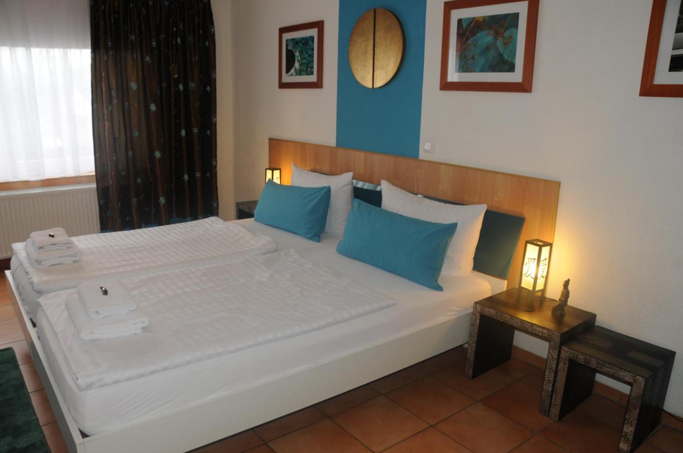 Economy Twin Room. Simple, large twin room in the old building. The room has a balcony with a table and seating (inside and outside), a TV, and a small bathroom with shower and toilet. An extra bed can be added for a third person. ;