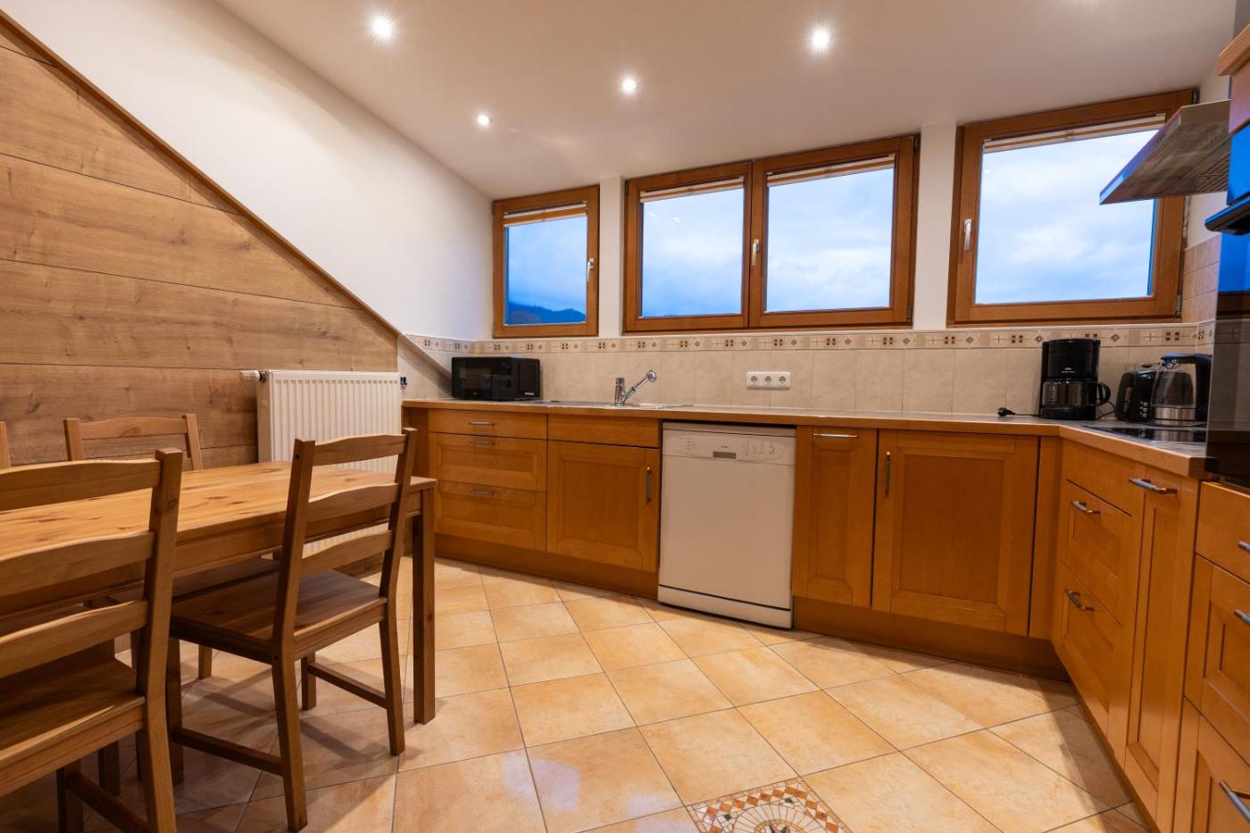 Apartment. This spacious apartment is comprised of 1 living room, 4 separate bedrooms and 1 bathroom with a bath and a shower. In the kitchen, guests will find a stovetop, a refrigerator, a dishwasher and kitchenware. Among the room amenities are a washing machine, a tea and coffee maker and a dining area as well as mountain views. The unit offers 8 beds.