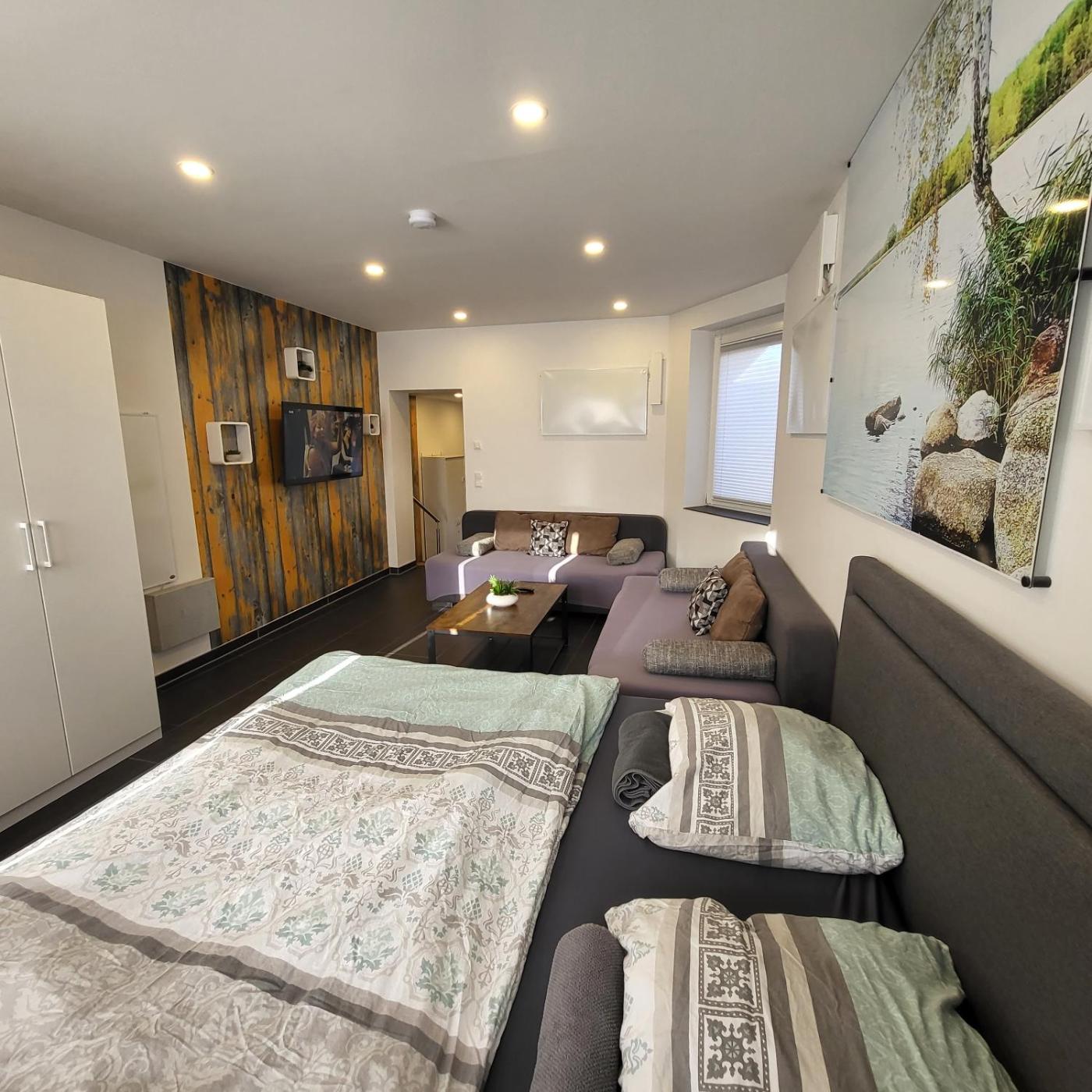 One-Bedroom Apartment. The apartment features 1 bedroom, 1 bathroom and a kitchen. The apartments kitchen is available for cooking and storing food. This apartment has a washing machine, heating, a flat-screen TV and garden views. The unit offers 3 beds.